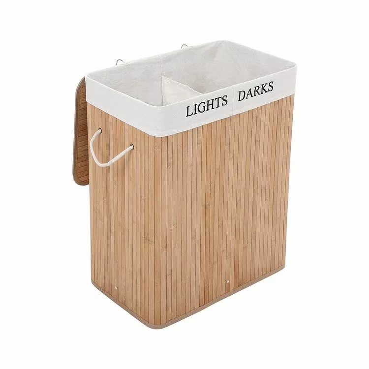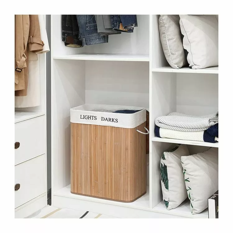 Avec ce Panier à Linge Pliable 2 Compartiments en bambou – 100 L, fini les vêtements qui trainent dans la maison ! Le couvercle est relié à la gaine par un anneau en métal pour éviter la défaillance ou l’abaissement du couvercle, le couvercle large peut supporter jusqu’à 10 kg, la poignée en coton des deux côtés de la gaine est pratique pour le transport , le bord de la gaine est recouvert de fibres de polypropylène, la plaque de fond est enveloppée de tissu non tissé, chic et durable.