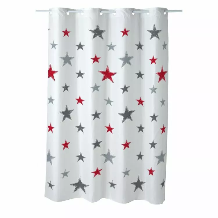 Ses motifs en forme d’étoile donneront une touche colorée dans votre salle de bain. La souplesse de sa matière est idéale au quotidien. Ce rideau de douche a des dimensions adaptées pour une baignoire ou une douche. Fabriqué en matière polyester, il est facilement lavable et résistant à l’eau.