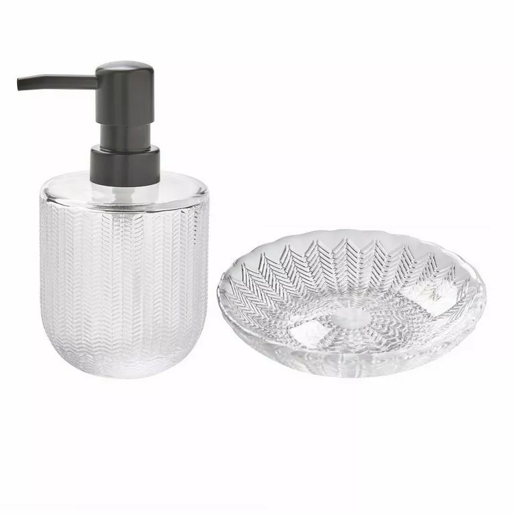 Ce set fait partie de la gamme ELLA, conçu en verre pour transformer vos accessoires de salle de bains en objet de décoration.