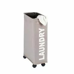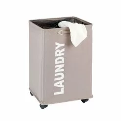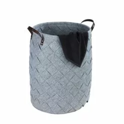 Wenko Panier à Linge Design Feutrine Tressée Trovo – Diam. 40 X H. 60 Cm – Gris Clair