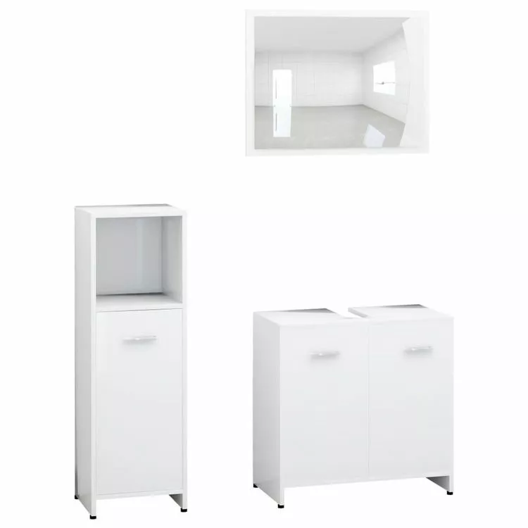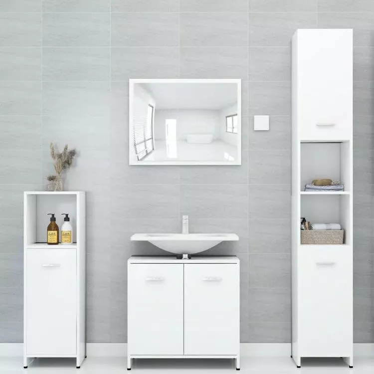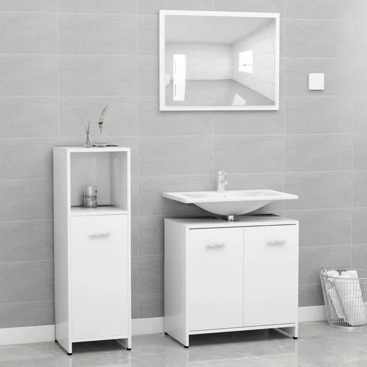 Fabrique en agglomere de haut de gamme, cet ensemble est durable et stable. L’armoire de taille moyenne chic dispose de 3 compartiments et 1 porte, offrant un espace spacieux pour stocker des articles dans votre salle de bain. L’armoire a lavabo a 1 compartiment et 2 portes, offrant amplement d’espace pour stocker vos articles de toilette, produits de beaute et divers types de petits articles. Vous pouvez meme organiser des peignes, des cosmetiques, des brosses a dents et du dentifrice dans les etageres a portee de main. Le miroir ajoute une excellente apparence a votre decoration existante. De plus, cet ensemble de salle de bain est facile a nettoyer avec un chiffon humide.