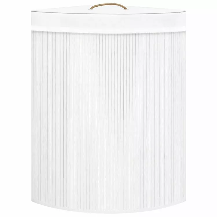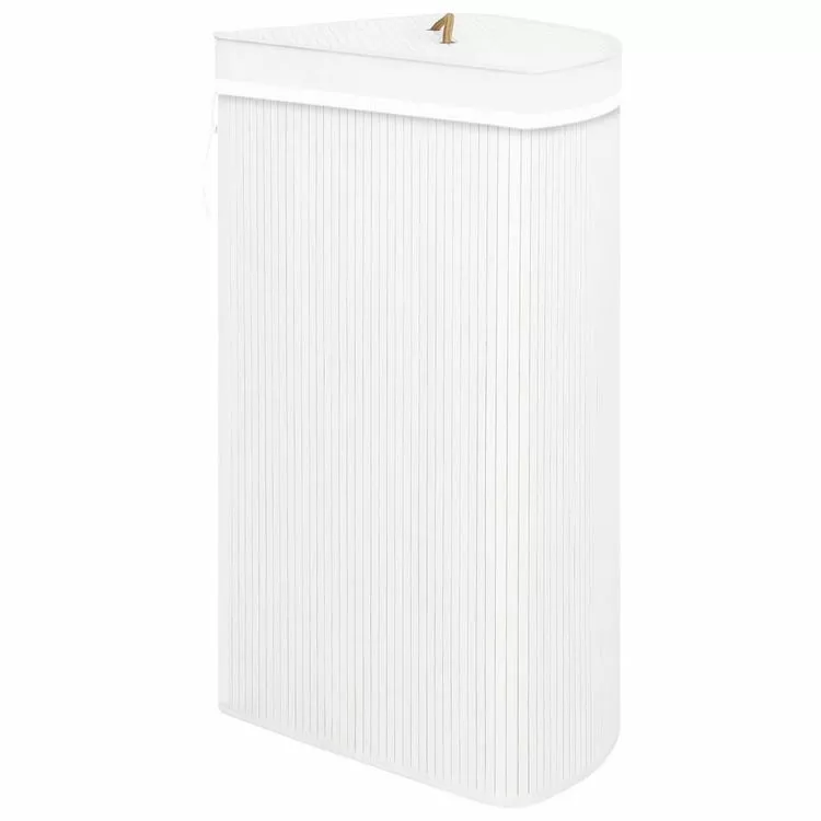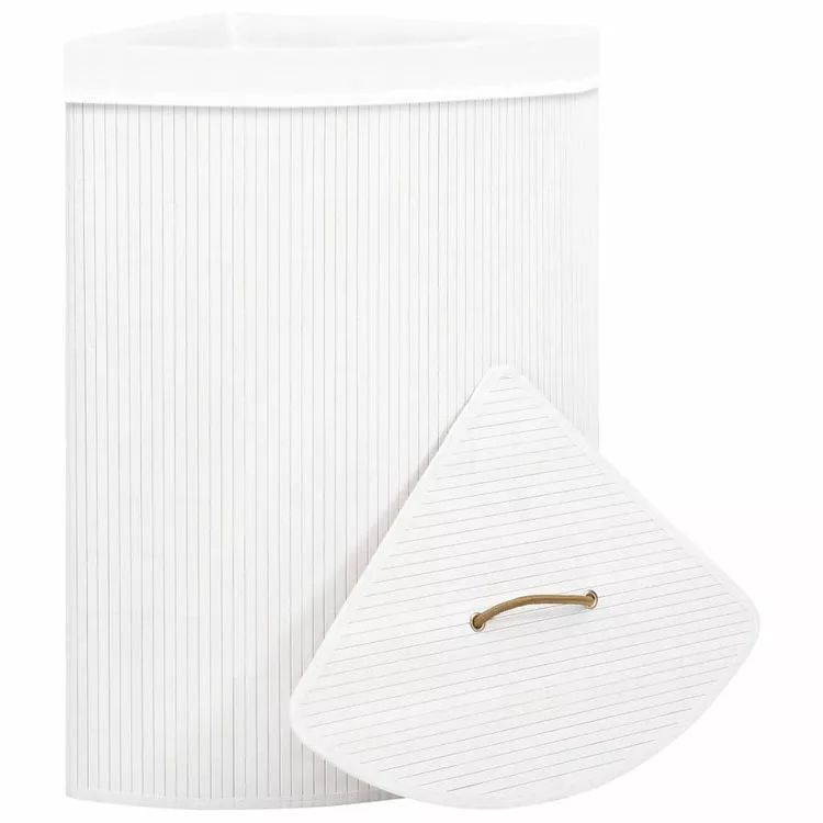 Ce panier a linge d’angle en bambou ecologique est une solution ideale pour tous les menages. Il garde votre linge sale hors de vue et constitue un supplement decoratif a votre decoration en meme temps.