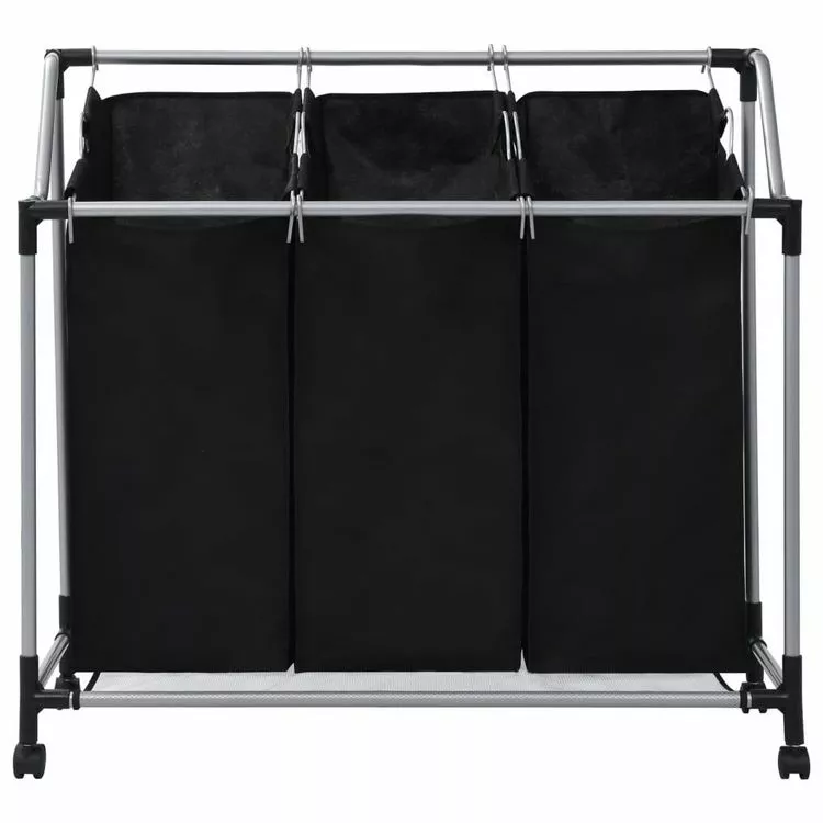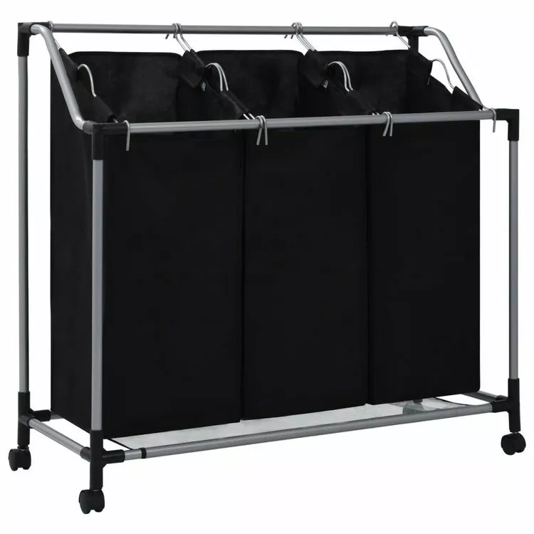 Imaginez a quel point il est pratique de garder vos vetements sales ranges et de les transporter facilement dans votre buanderie, notre trieuse de linge conviviale vous le permet ! Cette trieuse de buanderie organise bien votre buanderie ou garde-robe, ce qui en fait le choix ideal pour repondre a vos besoins individuels. Elle presente trois sacs de tri qui peuvent etre facilement retires pour transporter le linge a l’aide des poignees en acier.