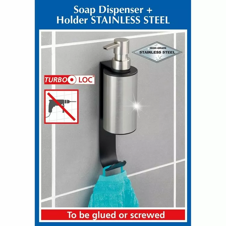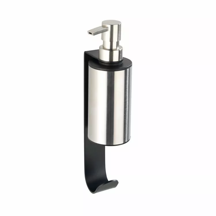 – Porte savon liquide mural avec crochet porte serviette.
